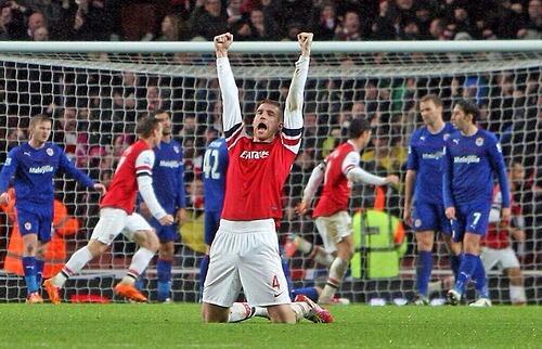 The second half saw Arsenal increase the tempo. Like those “defend your fort” games, the waves of Arsenal attacks increased in speed, intensity and frequency. Enter game changers Rosicky and Bendtner. Rosicky shifted Arsenal up a gear and to the horror of Cardiff’s defense started playing telepathic one-twos with Cazorla. Bendtner slotted in well into the centre-forward role. From two corners, in the space of a few minutes, Mertesacker had opportunities to put us in front. Painfully for the current Mr. Arsenal, the balls went wide. The second one might have been covered by the player at the post.