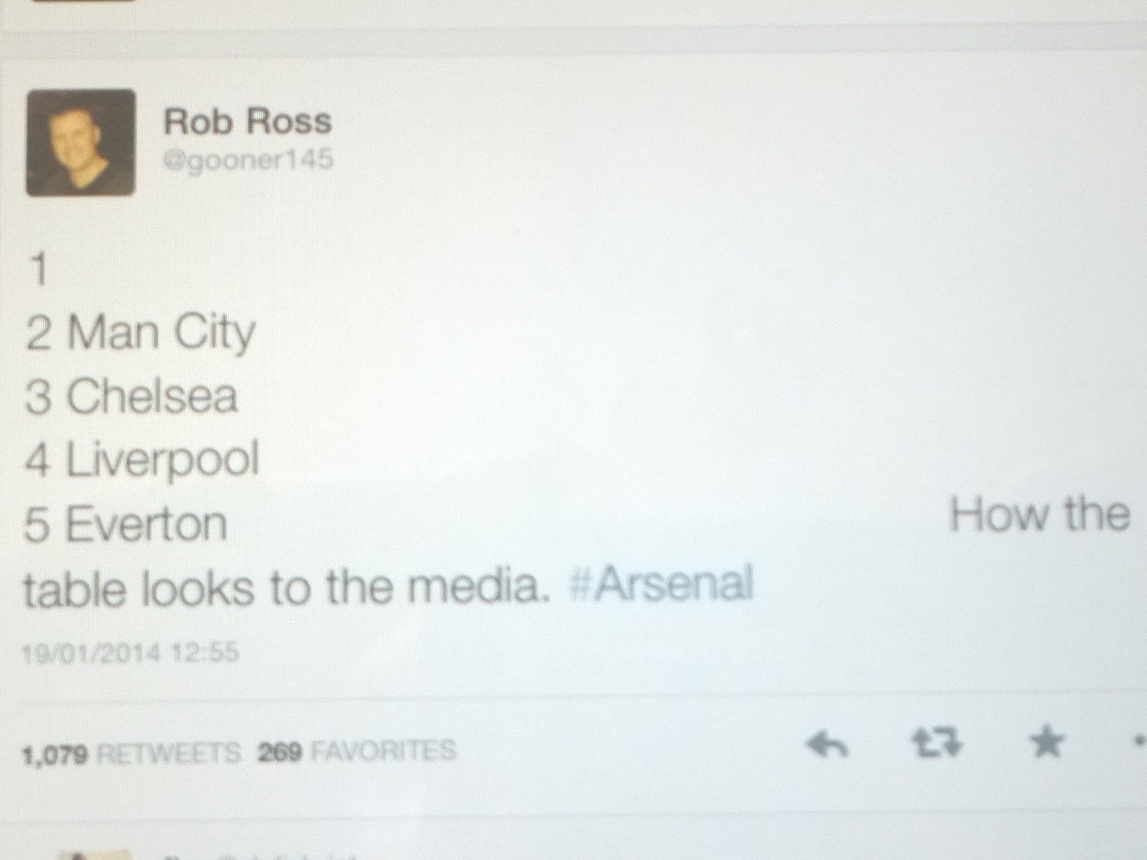 With possibly the tweet of 2014, Rob Ross (@gooner145) nails apparent media attitudes towards AFC