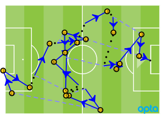 The first goal is what we try to do in our game and our build-up. The second goal shows that the game belongs to the players as well because it’s a consequence of two players who respond quickly to a situation, analyse it quickly and do what they want to do well. That’s basically what it was. It’s a consequence of intelligence and technique.