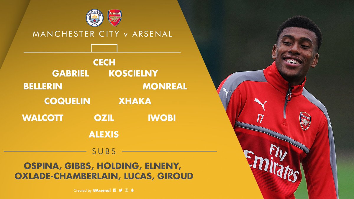 Arsenal team: Cech, Bellerin, Gabriel, Koscielny, Monreal, Coquelin, Xhaka, Walcott, Ozil, Iwobi, Alexis