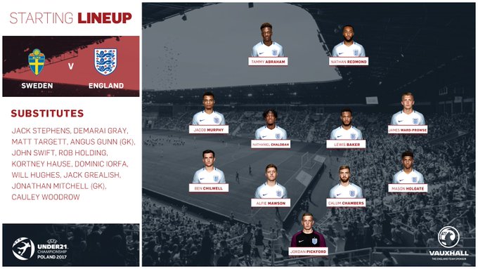 Chambers starts and Holding is on the bench, for England u21’s V Sweden U21’s this evening at the Euros
