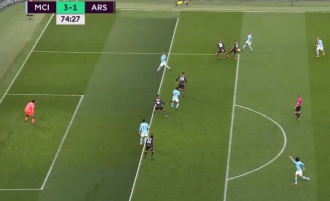 Arsenal counter and Stones avoids the early yellow (it’s usually a yellow for stopping a counter attack like that).