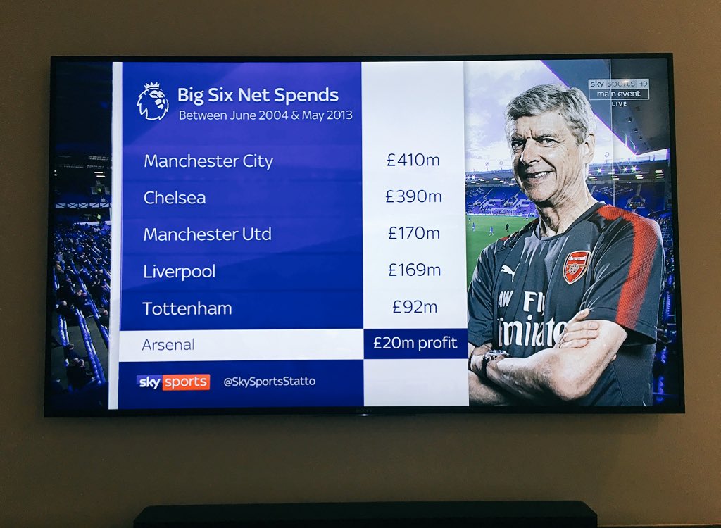 At the resumption, Gary Neville, who is doing color commentary on my feed, also feels the need to pile-on with his studio “experts” whinging about “same old” Arsenal for failing to score and letting West Ham back in the game. Like many in the Arsenal fanbase, Neville believes Arsenal should be rolling over West Ham. How dare the East Londoners successfully put up so much resistance. Apparently nobody told him, and the many other relics from the nineties and noughties, that Arsene no longer has the cream of French talent at his disposal. Since 2005, when Arsenal began selling off the Invincibles to pay for the new stadium; City, Chelsea and United each spent nearly 1 billion on transfers while Arsene was left to scrounge for bargains in the 2nd and 3rd tier bins.