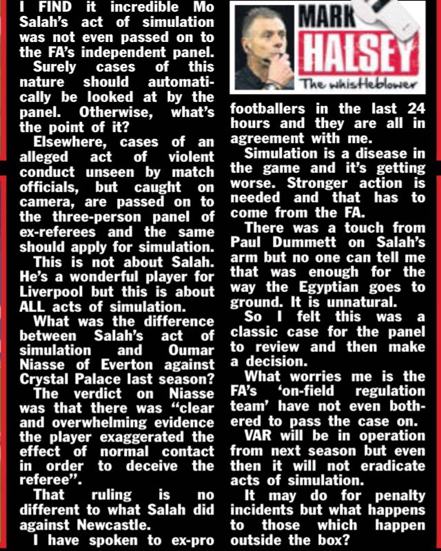 Pathetic that Salah wasn’t sanctioned, but think we all know why. Not what you do, it’s who you play for, and two or three clubs are being given a free pass when it comes to diving.