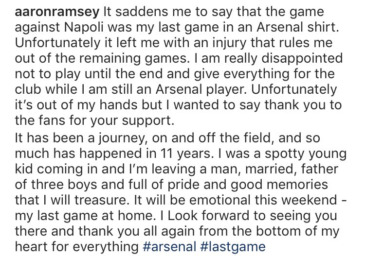 Pornstein has announced Ramsey has played his final game for us. What a shame assuming the oracle is correct.