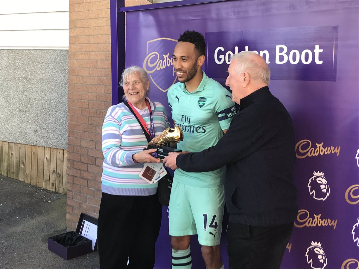 Think Aubameyang wins the Golden Boot even though he is level with others, but he has best goals per minute ratio.