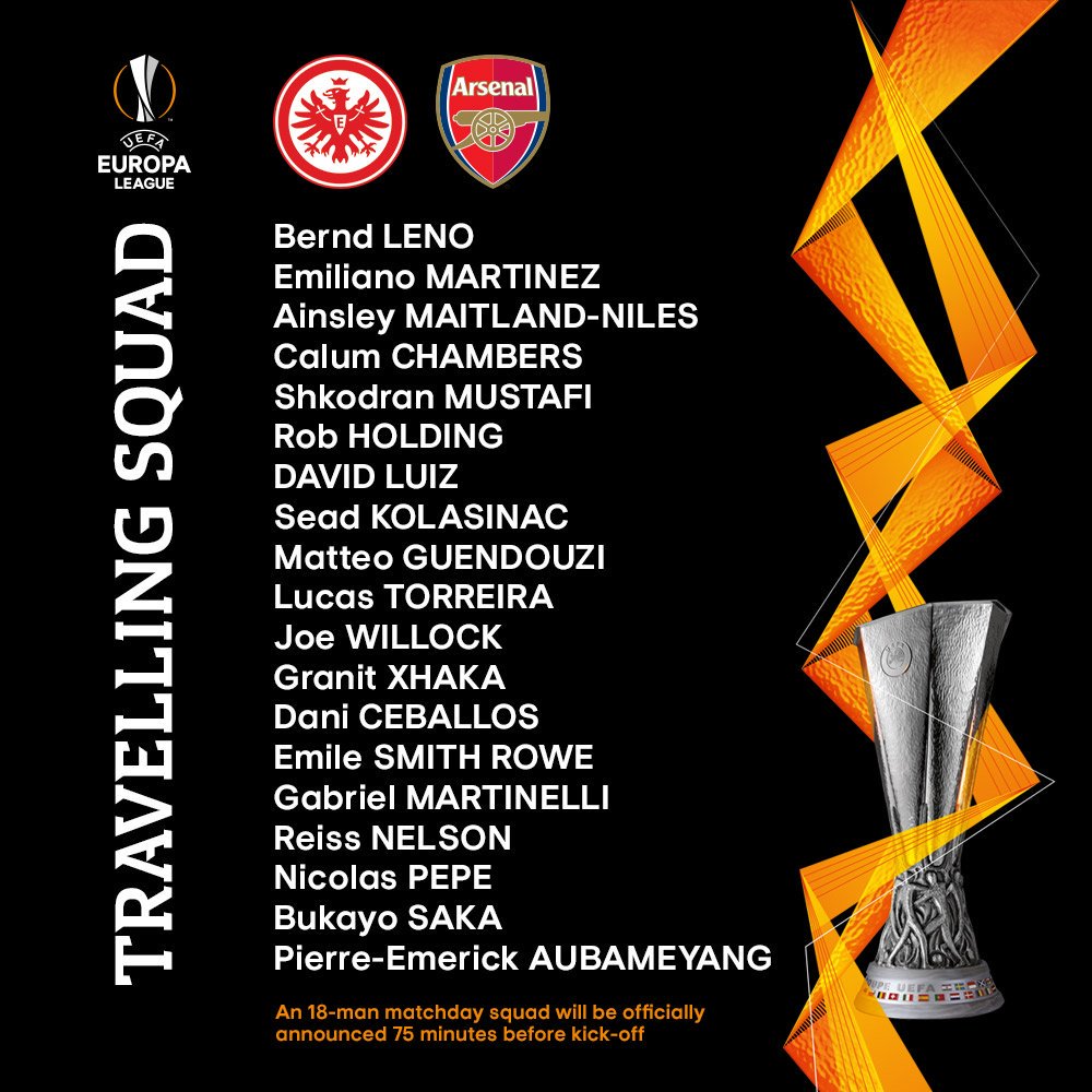 19 in the travelling squad, looks over stocked with CB’s so likely one of them misses out, thought Mustafi could play right back so it might be one of the youth forwards who miss out on the 18 man squad